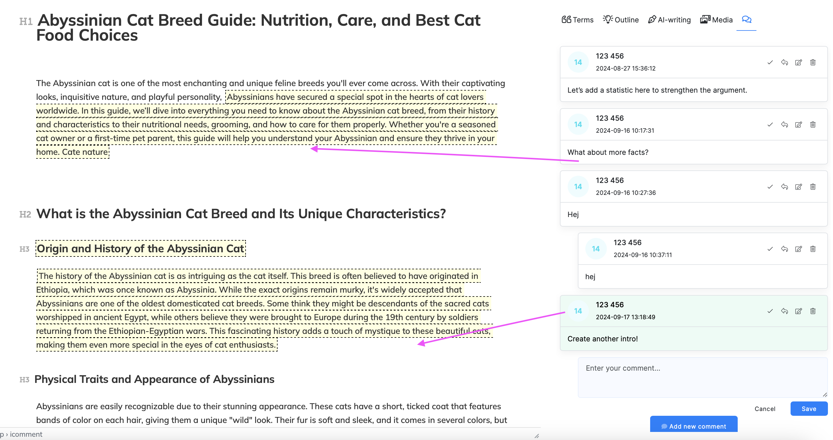 Right now we copy/paste blogs from NeuronWriter to Google Docs for our team to make comments and suggestions. Would make the workflow a LOT easier if that functionality was built into NeuronWriter where you can have either internal team members (who are on your account) or external guests/clients who access through a link be able to add comments and suggestions for edits.